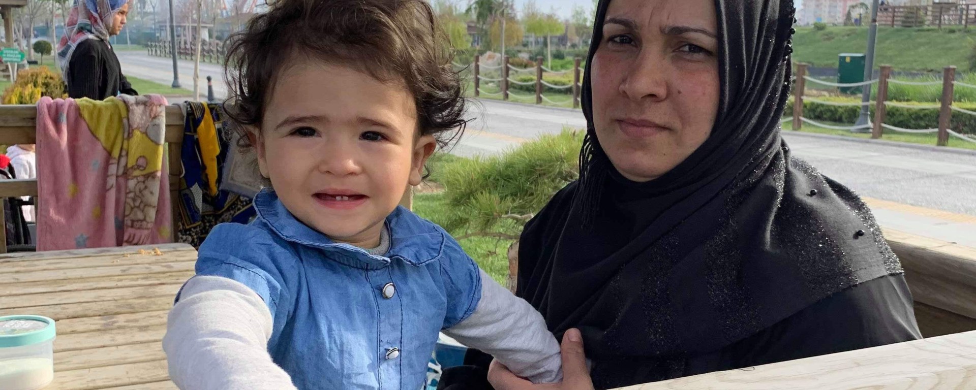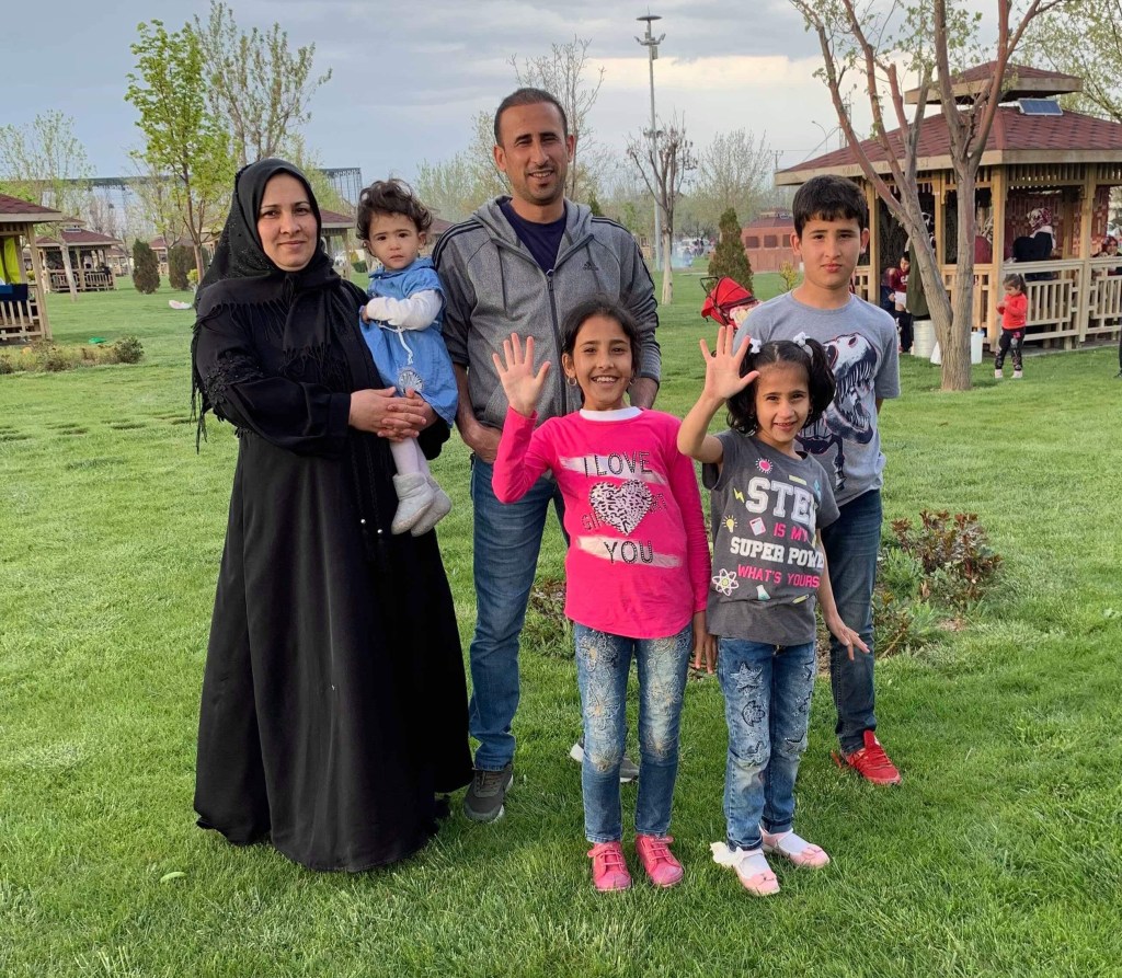 Ghufran (holding daughter), her husband Ahmed and their children are Iraqi refugees in Turkey. They were waiting for news about their flight to Saskatoon when the pandemic hit.