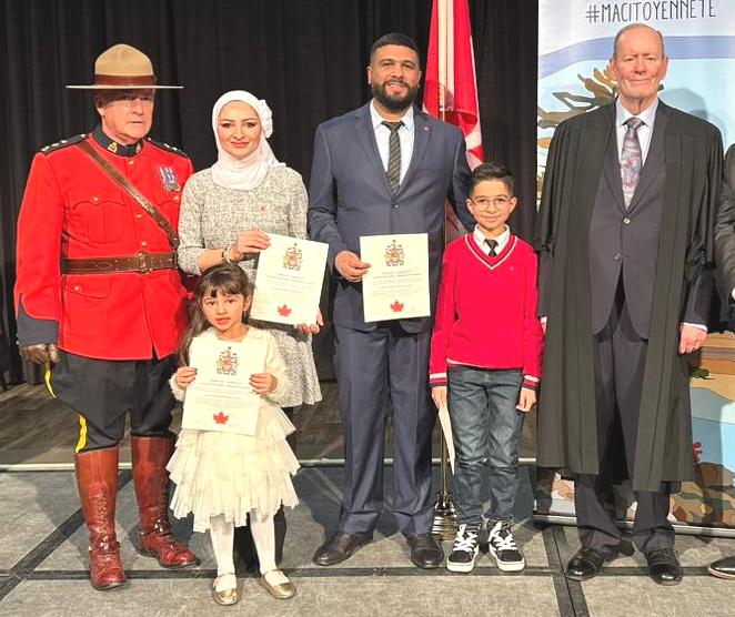 Iraqi refugees Samer Al-Saleem and Marwa Almufty and their two children Rudy and Neelam (pictured below) also became citizens in the last year. They arrived in Saskatoon in the summer of 2018 and were among the 28 refugees Nest welcomed to the city that year.